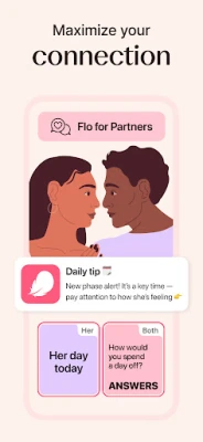 Link your Flo account with your partner so they can see updates on your cycle and pregnancy. Period and fertile days predictions, we'll provide them with insights and actions they can take to support you better. Use Flo for Partners to maximize your connection when tracking your period, ovulation, or pregnancy.
